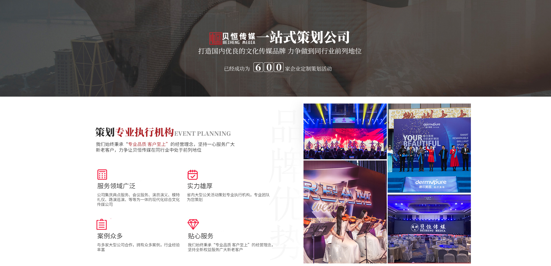 合 肥 貝 恒 文 化 傳 媒 專注·專業(yè)·專心·效率   合肥貝恒文化傳媒有限公司2017年成立于安徽·合肥,是省內(nèi)大型公關活動策劃專業(yè)執(zhí)行機構(gòu),公司集慶典服務、會議服務、演員演藝、模特禮儀、路演巡演、展會特裝、廣告制作、設備租賃、舞美策劃、企業(yè)形象宣傳等為一體的現(xiàn)代化綜合文化傳媒公司,我們始終秉承“專業(yè)品質(zhì)客戶至上”的經(jīng)營理念,堅持全...